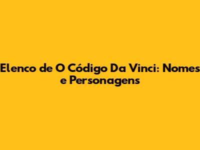 Elenco De O Código Da Vinci: Nomes E Personagens