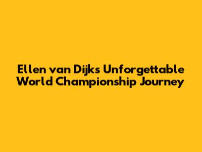 Ellen Van Dijk's Unforgettable World Championship Journey