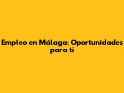 Empleo En Málaga: Oportunidades Para Ti