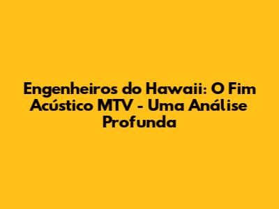 Engenheiros Do Hawaii: O Fim Acústico MTV - Uma Análise Profunda