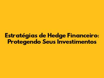Olá, pessoal! Se você está começando a se aventurar no mundo dos investimentos ou já é um veterano, com certeza já ouviu falar sobre hedge financeiro. Mas, afinal, o que é isso? Basicamente, o hedge é uma estratégia que visa proteger seus investimentos contra os riscos do mercado. É como ter um seguro para suas aplicações, sabe?