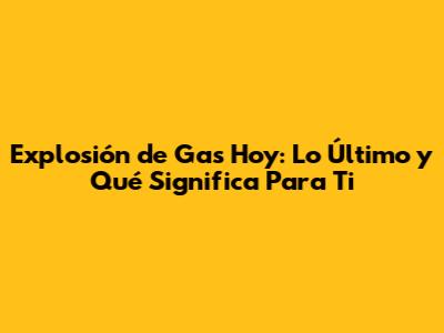 Explosión De Gas Hoy: Últimas Noticias Y Lo Que Debes Saber