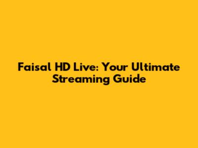 Faisal HD Live: Your Ultimate Streaming Guide