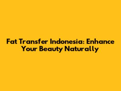 Fat Transfer Indonesia: Enhance Your Beauty Naturally