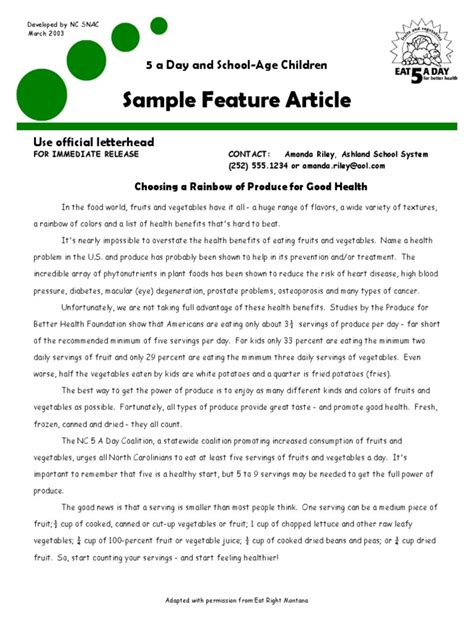 Feature Article Examples For School Newspapers