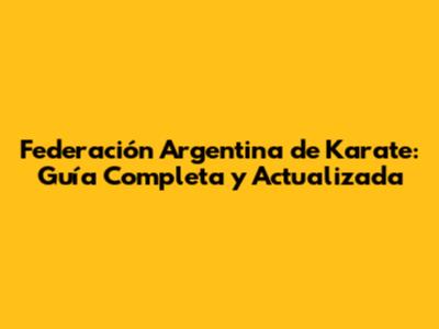 Federación Argentina De Karate: Guía Completa Y Actualizada