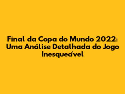 Final Da Copa Do Mundo 2022: Um Jogo Inesquecível