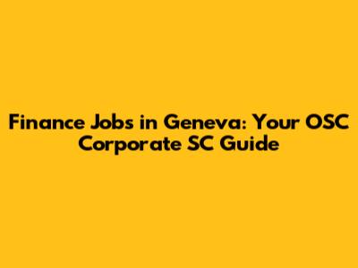 Finance Jobs In Geneva: Your OSC Corporate SC Guide
