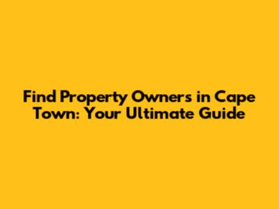 Find Property Owners In Cape Town: Your Ultimate Guide