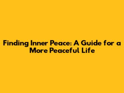 Finding Inner Peace: A Guide For A More Peaceful Life