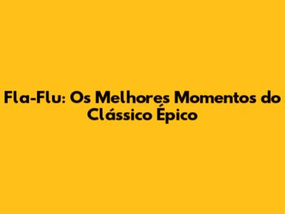 Fla-Flu: Os Melhores Momentos Do Clássico Épico