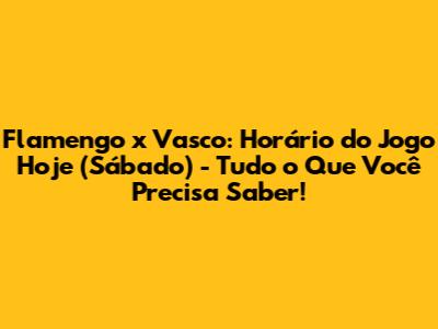 Flamengo X Vasco: Horário Do Jogo Hoje (Sábado) - Tudo O Que Você Precisa Saber!