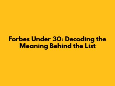 Alright, guys, ever wondered what the heck Forbes Under 30 really means? You've probably heard about it, seen the headlines, and maybe even dreamt of making the list yourself. But what's the big deal? Let's break it down in simple terms, so you know exactly what this prestigious list is all about. Trust me; it's more than just a fancy title. It's a recognition of hard work, innovation, and potential.