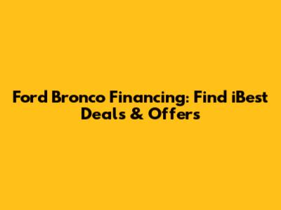 Finding the iBest Ford Bronco financing deals requires research, patience, and a little bit of savvy. But with the right knowledge and strategies, you can drive off the lot in your dream Bronco without breaking the bank. Remember to shop around, improve your credit score, take advantage of incentives, and negotiate aggressively. Good luck, and happy trails!