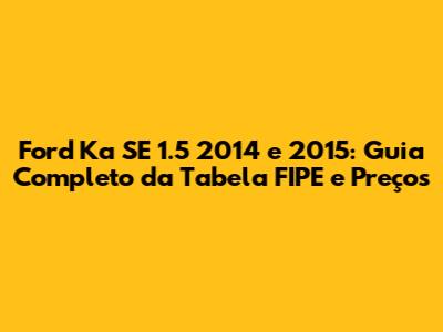 Hey pessoal! Se você está pensando em comprar ou vender um Ford Ka SE 1.5 dos modelos de 2014 ou 2015, você veio ao lugar certo. Neste guia completo, vamos mergulhar no universo da Tabela FIPE e descobrir tudo o que você precisa saber sobre os preços, as variações e como usar essa ferramenta essencial. Prepare-se para desvendar os mistérios da Tabela FIPE do Ford Ka SE 1.5, entender como ela funciona e tomar decisões mais informadas no mercado automotivo. Vamos lá?