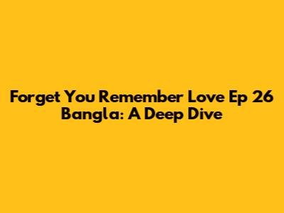 Hey there, fellow drama enthusiasts! If you're anything like me, you've probably been glued to your screens, eagerly awaiting the next episode of Forget You Remember Love. And if you're here, chances are you're specifically hunting for episode 26 with Bangla subtitles. Well, you've come to the right place! This article is your one-stop shop for everything related to Forget You Remember Love Episode 26, diving deep into the recap, where to watch it, and what makes this drama so darn captivating. So, grab your snacks, get comfy, and let's unravel the magic of Episode 26 together, shall we?