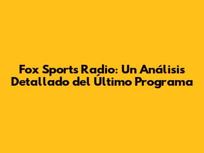 Fox Sports Radio: Último Programa Y Análisis Completo