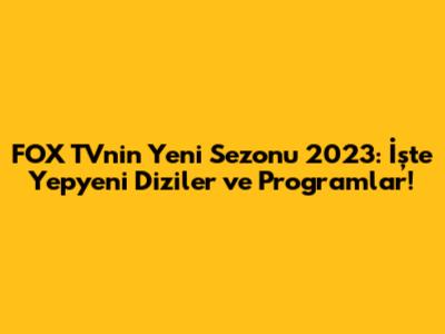 Selam millet! Televizyon dünyasında heyecan dorukta! Özellikle de FOX TV sevenler için! Çünkü 2023-2024 sezonu için hazırlıklar tüm hızıyla devam ediyor. Yeni diziler, yepyeni programlar ve tabii ki favori dizilerimizin yeni bölümleriyle ekranlarımız şenlenecek. Gelin, FOX TV'nin yeni sezon tanıtımına yakından bakalım ve nelerle karşılaşacağımızı hep birlikte görelim! Bu sezon, FOX TV'nin izleyicilerine unutulmaz anlar yaşatacak gibi duruyor. Hazır olun, çünkü ekranlarınızın başından kalkmak istemeyeceksiniz!
