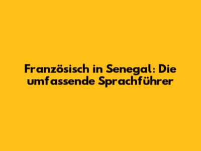 Französisch In Senegal: Die Umfassende Sprachführer