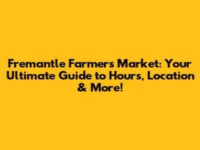 Fremantle Farmers Market Opening Hours: Plan Your Visit