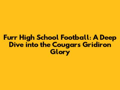 Hey sports fanatics! Ever heard of Furr High School and their awesome football team? Well, if you haven't, you're in for a treat! We're diving deep into everything Furr High School football, from the electrifying game days to the rich history and some of the most memorable moments on the field. Get ready to learn about the Cougars and what makes their football program so special. This isn't just about the wins and losses, it's about the heart, the hustle, and the community that comes together under the Friday night lights. Let's get started, guys!