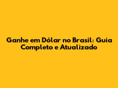 Ganhe Em Dólar No Brasil: Guia Completo E Atualizado