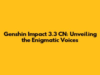 Hey everyone, let's dive into the fascinating world of Genshin Impact and specifically focus on the Chinese (CN) voice acting in the 3.3 update! You know how much we all love this game, and the voice acting is a huge part of what makes it so immersive. In the 3.3 update, there were some really interesting and, dare I say, mysterious aspects surrounding the voiceovers. Let's unpack it all, shall we? This update brought in new characters, events, and stories, and with it, a fresh wave of vocal performances to analyze. The CN voice acting, in particular, often sparks a lot of discussion among the community. It's not just about the quality of the voices, but also the nuances, the interpretations, and how they bring the characters to life. We're going to break down some of the key elements, some of the chatter, and the general vibe around the CN voice acting in version 3.3, especially focusing on those mysterious elements that caught everyone's attention. Buckle up, because we're about to delve into the vocal artistry that makes Teyvat so captivating!