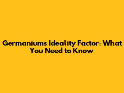 Germanium's Ideality Factor: What You Need To Know