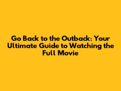 Go Back To The Outback: Watch The Full Movie Now!