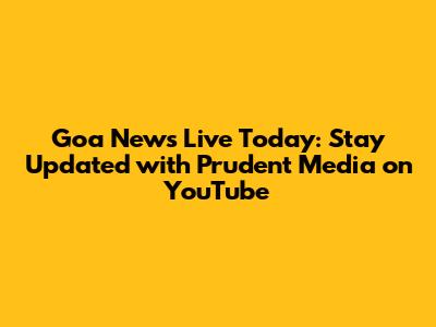 Goa News Live Today: Prudent Media YouTube