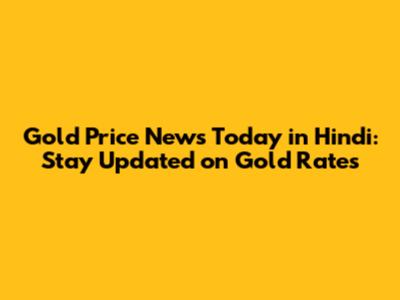 Gold Price News Today In Hindi