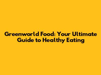 Greenworld Food: Your Ultimate Guide To Healthy Eating