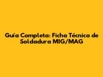 Guía Completa: Ficha Técnica De Soldadura MIG/MAG