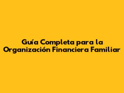 Guía Completa Para La Organización Financiera Familiar