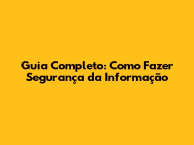 Guia Completo: Como Fazer Segurança Da Informação