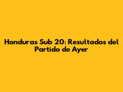 Honduras Sub 20: Resultados Del Partido De Ayer