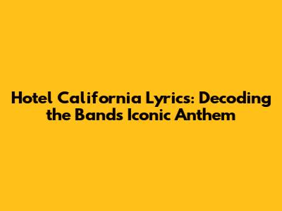 Hey everyone! Ever found yourself completely lost in a song, just vibing to the music and wondering, "What in the world are they even singing about?" Well, today we're diving deep into one of the most iconic songs of all time: "Hotel California" by The Eagles. This track isn't just a song; it's a journey, a mystery, and a whole lotta poetry rolled into one unforgettable melody. We're gonna break down the Hotel California lyrics, piece by piece, and try to figure out what the heck the band was trying to tell us. So, grab your headphones, get comfy, and let's unravel this musical masterpiece together!