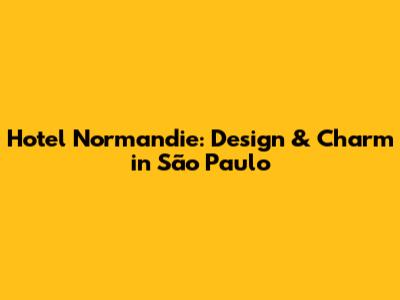 Hey guys! Ever dreamed of a place where history, design, and a killer location all collide? Well, let me introduce you to the Hotel Normandie in São Paulo. This isn't just any hotel; it's a real gem, steeped in history and brimming with unique design features. So, grab a coffee (or a caipirinha, if you're feeling fancy!), and let's dive into what makes this place so special. We're going to explore its incredible design, the amazing experiences it offers, and why it should be at the top of your list if you're planning a trip to this vibrant Brazilian city. Let's get this show on the road!