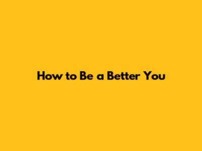 How To Be A Better You