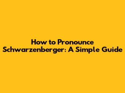How To Pronounce Schwarzenberger: A Simple Guide