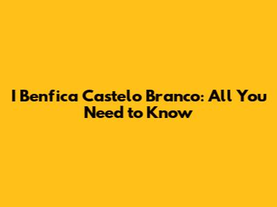 Are you curious about I Benfica Castelo Branco? Maybe you've heard the name and want to know more? Well, you've come to the right place! This article dives deep into what I Benfica Castelo Branco is, its significance, and everything else you might want to know. So, let's get started and unravel the mystery!