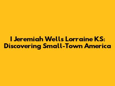 Hey guys! Ever stumbled upon a name and a place and wondered, "What's the story there?" Well, that's exactly what happened when I came across "I Jeremiah Wells Lorraine KS." It's more than just a name and a location; it's a doorway into the heart of small-town America. Let's dive in and explore who I Jeremiah Wells might be and what makes Lorraine, Kansas, so special. This journey is all about uncovering the charm and character of places and people you might not find on a typical tourist map.