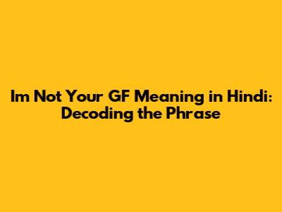 I'm Not Your GF Meaning In Hindi: Decoding The Phrase