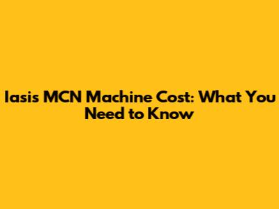 Iasis MCN Machine Cost: What You Need To Know