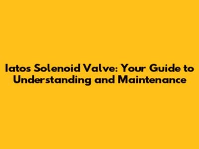 Iatos Solenoid Valve: Your Guide To Understanding And Maintenance