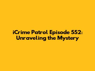 Hey everyone, and welcome back to our deep dive into the gripping world of iCrime Patrol! Today, we're dissecting iCrime Patrol Episode 552, a particular installment that left us all on the edge of our seats. This episode wasn't just another case; it was a masterclass in suspense, a chilling reminder of the darker aspects of human nature, and a testament to the incredible work of the investigative forces. We'll be breaking down the narrative, analyzing the key players, and exploring the lessons we can glean from this intense episode. So grab your popcorn, settle in, and let's unravel the mystery together.