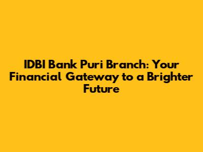IDBI Bank Puri Branch: Your Financial Gateway