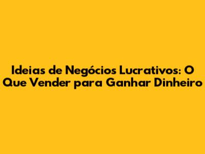 Ideias De Negócios Lucrativos: O Que Vender Para Ganhar Dinheiro