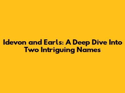 Idevon And Earls: A Deep Dive Into Two Intriguing Names