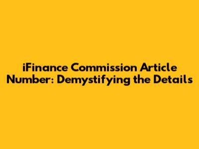 Hey guys! Ever stumbled upon the term "iFinance Commission Article Number" and scratched your head? Don't worry, you're not alone! It's a pretty crucial piece of the puzzle if you're diving into the world of iFinance. This article will break down exactly what it is, why it matters, and how to find it. We'll be going through it all, from the basics to the nitty-gritty details, so you'll be an expert in no time. So, buckle up, and let's unravel the mystery together! Let's get down to the basics. The iFinance Commission Article Number is essentially a unique identifier assigned to a specific article or document related to the iFinance commission structure. Think of it like a serial number for a particular regulation, policy, or piece of information. This number is used to easily reference and locate the specific details of the commission structure. It is really important because it brings clarity, because if something goes wrong, you can easily go back and see what is stated in the article. This makes it easier to reference the rules.